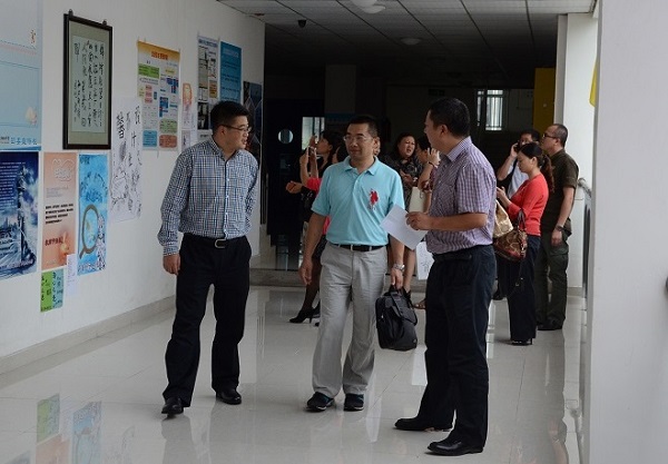 杨远东副局长一行在高仁辉校长陪同下首先参观了泡中学科教室、走廊文化、学生公共休息区等,并对我校选课走班运行情况进行了现场了解。