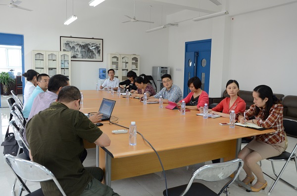 领导们在学校会议室召开座谈会