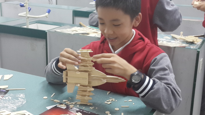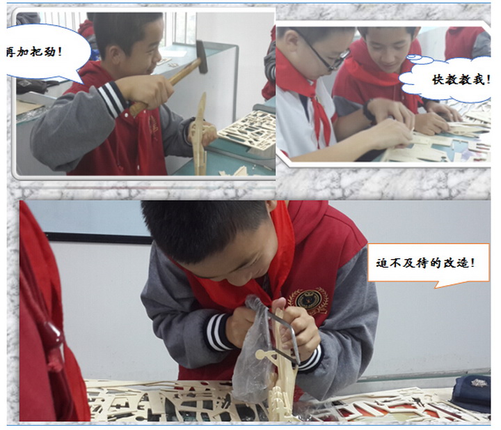 喻老师介绍到:“本学期的课程将分为木工模型概述、木工模型设计、实体拼装、学习考察、成果考核五个阶段,让学生从动手制作过渡到设计领域,放手让他们大胆尝试实现自己的想法。同时带领学生对一些模型公司进行实地考察,拓宽他们的视野。”学生们在享受拼接、设计乐趣的时候,也是他们打造艺术殿堂的神圣时刻。在这里,激发他们的求知欲可能比他们学到知识本身更有意义,而成功的喜悦将是最好的法宝!