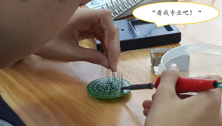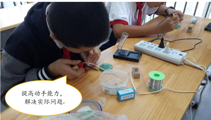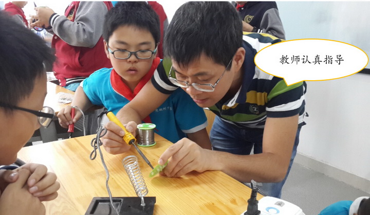 学生能有这样出色的表现一方面源于他们对电子焊接课程的热爱,另一方面要归功于任课教师的辛勤指导,虽然课程只开设短短一学期的时间,但是相信孩子们会用他们的学习热情将课程投入学海,勤学无边,从而终身受益。
