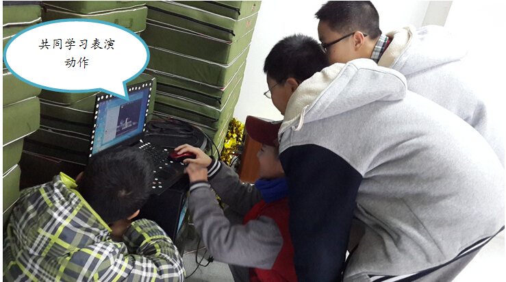 在同学们掌握了基本的唱歌技巧之后,学生会有种迫不及待想要展现自我的冲动,但此时的自我展现往往容易让他们心生傲骄,对技能的追求止步不前,因此,李鹏老师让学生自由组合成小组,要求共同表演一首歌曲,根据音色分角色演唱,按小组的整体表演来评分。在这个过程中,学生会发现统一歌曲就是一大难题,要做到合理分配角色也令人头疼,表演动作时互相配合的默契欠佳……但是当他们一一克服这些困难,学会团队合作之后,将发现团队的力量是无穷的,每个人的歌声都各有千秋,承认别人的同时也在提升自己!从而怀揣着谦虚的心态不断进取。