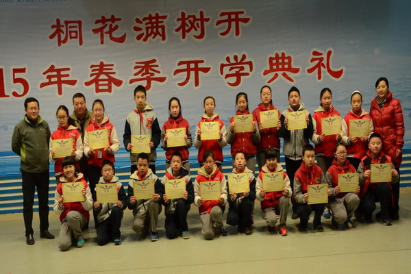 在回顾寒假生活,传递正能量节目表演中, 徐瑜彬、周悦瑶两位同学为我们带来精彩的双簧表演。彭婧婷,贺怡睿,杨柳青青,王煜豪同学为我们带来三句半表演。孙熙睿同学代表全体志愿者和我们一起分享当志愿者的感受。在学期颁奖中,分别颁发了多个奖项.