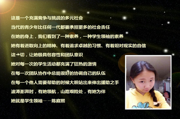 陈 庭 熙 同 学 在 作 发 言