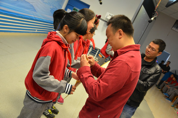 张雪盈等16位同学光荣的佩戴“泡桐少年”徽章