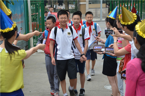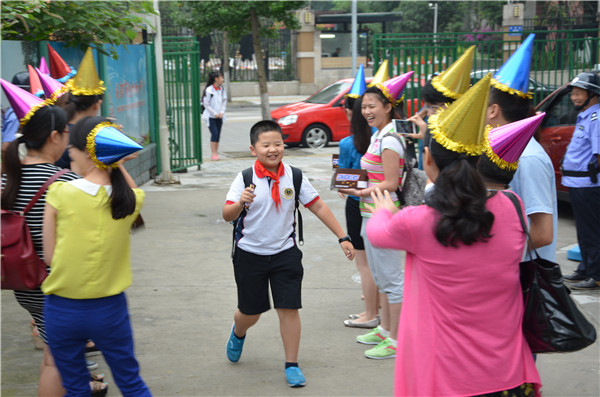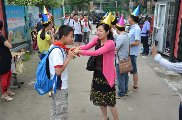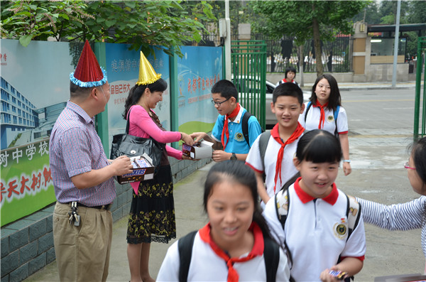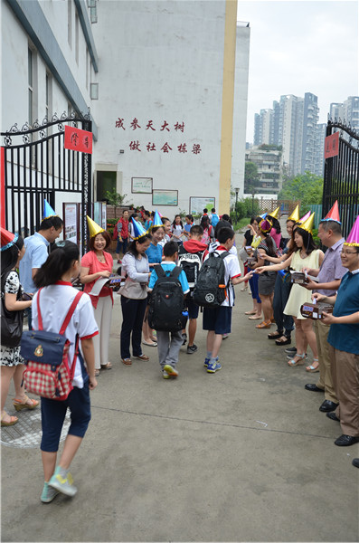 为庆祝我校孩子们的“六一儿童节”,老师们早早地来到校门口迎接着每一位泡中学子,并将精心准备的节日礼物送给他们,向他们表达节日祝愿!在今早的“童年忆梦——六一儿童节庆祝活动”主题朝会中,孩子们进一步品味着童年、感悟着童年!