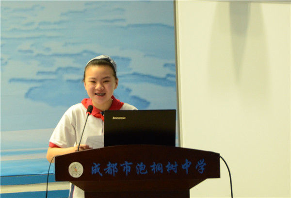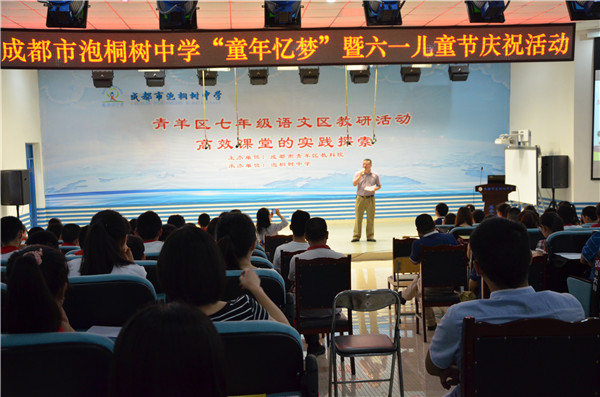 第五幕:高校长作童年寄语,在寄语最后高校长说"希望全体同学思想纯真、童心不泯,在泡桐树中学度过愉快的少年时期,成参天大树,做社会栋梁!"