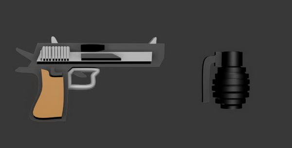 周子涵同学的手枪和手雷模型作品