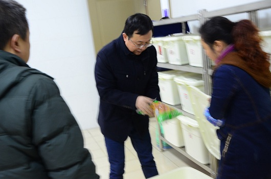 在高仁辉校长和欧燕副校长的陪同下,邱部长一行首先来到学校的操场检查学生运动基础设施。接着,来到食堂进行了查看,检查了食堂的安全设施和设备,食品留样情况,并对各样蔬菜进行了抽样检查。最后,查看了学生公寓以及教学楼的消防设施和学校的基础设备并询问了学校对学生的安全教育情况。