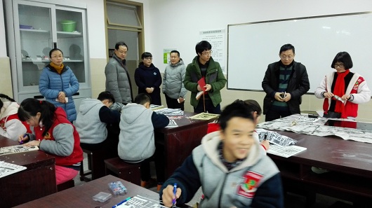 李书记一行先实地查看了教学楼、操场、艺术楼等校园环境建设,并观摩了戏剧课、版画课、油画课等泡中的特色化课程。看着学生们在特色课程上精彩的表现和幸福的表情,李书记和刘书记对泡中的个性化教学作出了充分地肯定。随后,李书记一行听取了高仁辉校长就泡中办学理念、课程设置、教师配备等情况的汇报,并针对泡中目前资源配置、师资缺乏等问题提出了建议。李书记指出,在今后的教师配置中,可以考虑到人才中心外聘高素质的人才、民办学校聘用骨干教师等方式加强师资队伍的建设,并且应该加强实验员、档案管理员、图书管理员等专职人员的建设。