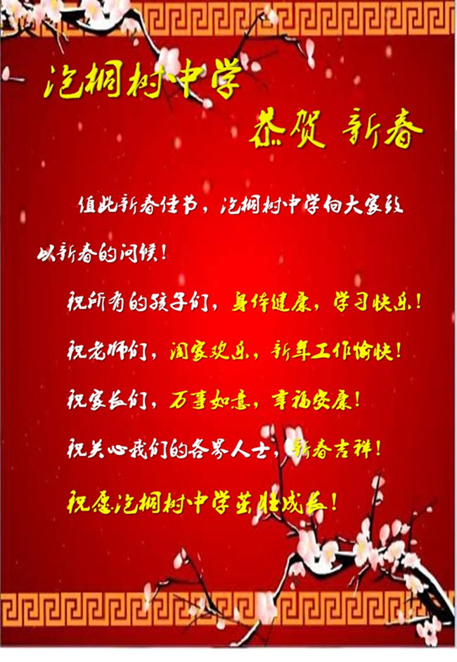 泡桐树中学恭祝各位新春快乐!
