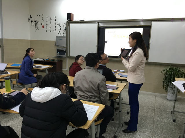 2016年3月10日下午,泡桐树中学未来学校平板实验班项目组的全体老师齐聚在405教室,来自成都交大电子有限公司的赵群老师将在这里为老师们进行首次关于开展智慧课堂教学的全方位培训。