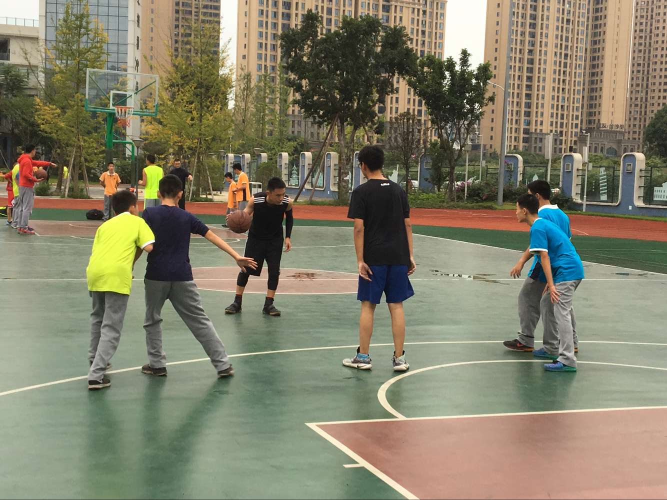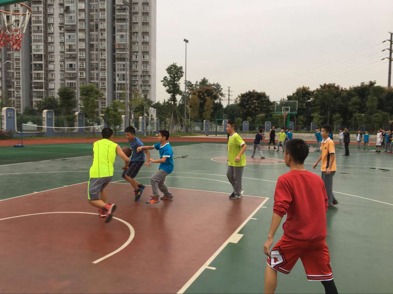 10月12日下午5点,泡桐树中学第三届体育季分赛项目——篮球达人赛在校室外篮球场火热进行,项目由技巧达人赛、投篮达人赛和人气最旺的3vs3篮球对抗赛组成。