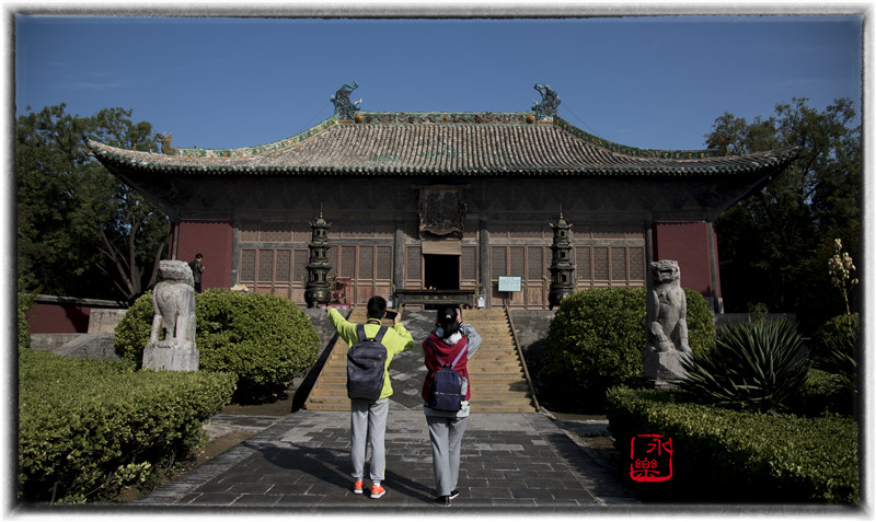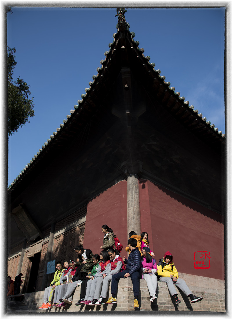 永乐宫五进重门,元代建筑有汉唐之风,朴实而大气。同学们为这雄伟大殿而惊叹,仅仅一个供奉吕纯阳的道观就如此规模。我国古代建筑的气势一览无余