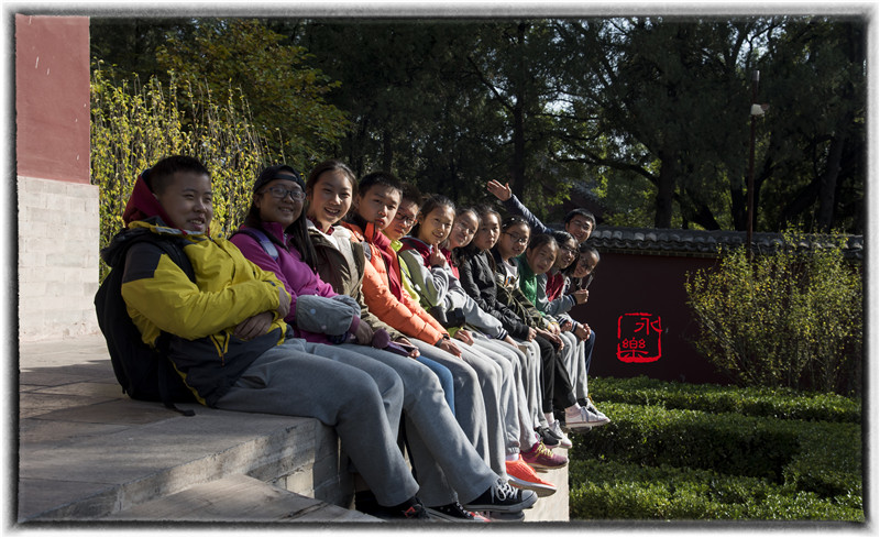 深秋的暖阳与红墙宫阙溶为一体,同学们笑靥如花。