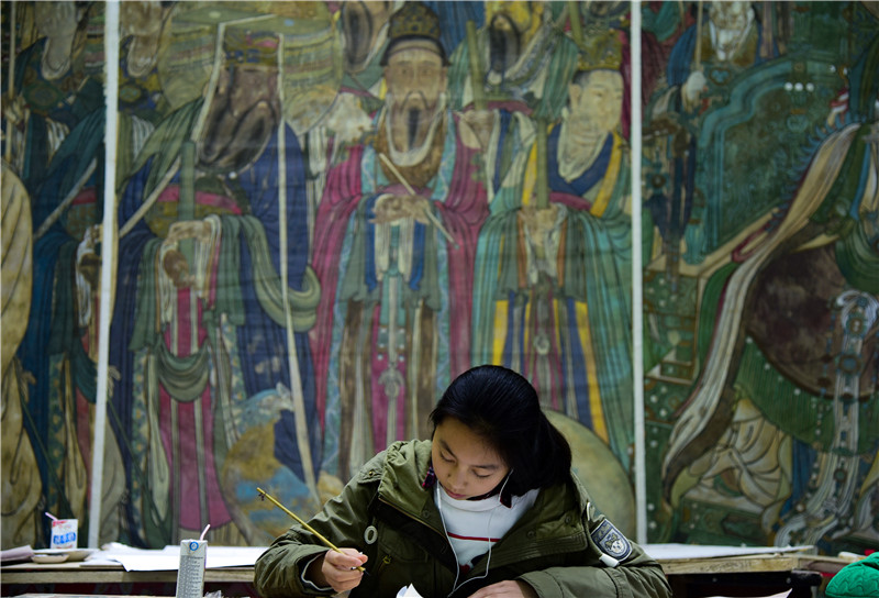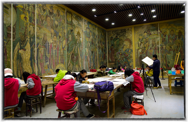 一路上同学们领域了盐湖余晖、宫阙之壮、壁画之韵、蒲剧秦腔、野趣之乐。更在为时两天的临摹之中,找到那一份静美,一份坦然,更有一份将国宝传承的责任。不仅仅是对绘画艺术的学习,更有祖国大好山河炫丽文明的认同与景仰。我们静静的坐在画桌之前,满室浓郁的艺术气息让人陶醉,仿佛灵魂得到了升华。这样的静静的游学,其收获的不仅是眼前的美景,手中的美画。更是心灵的充实。