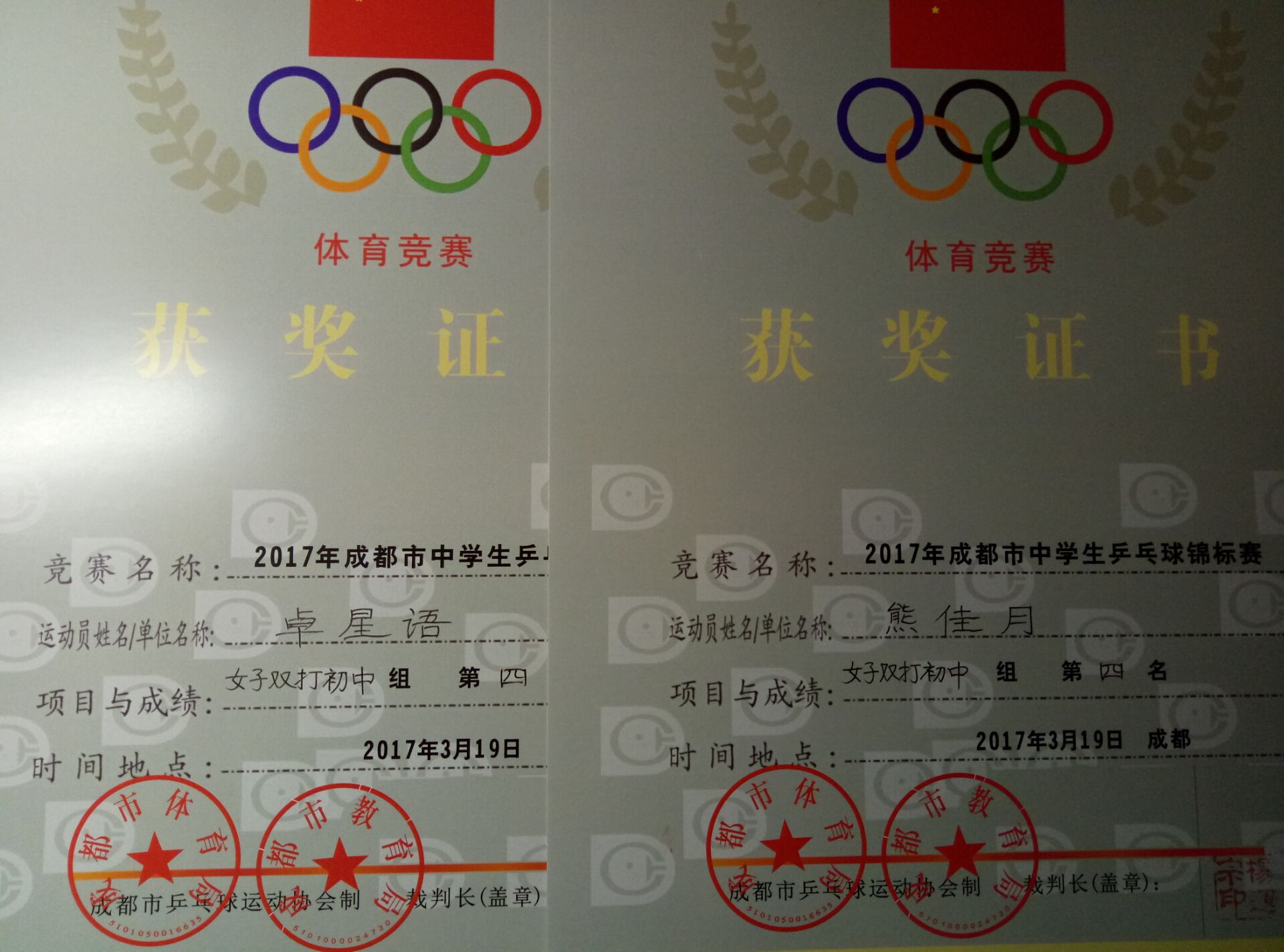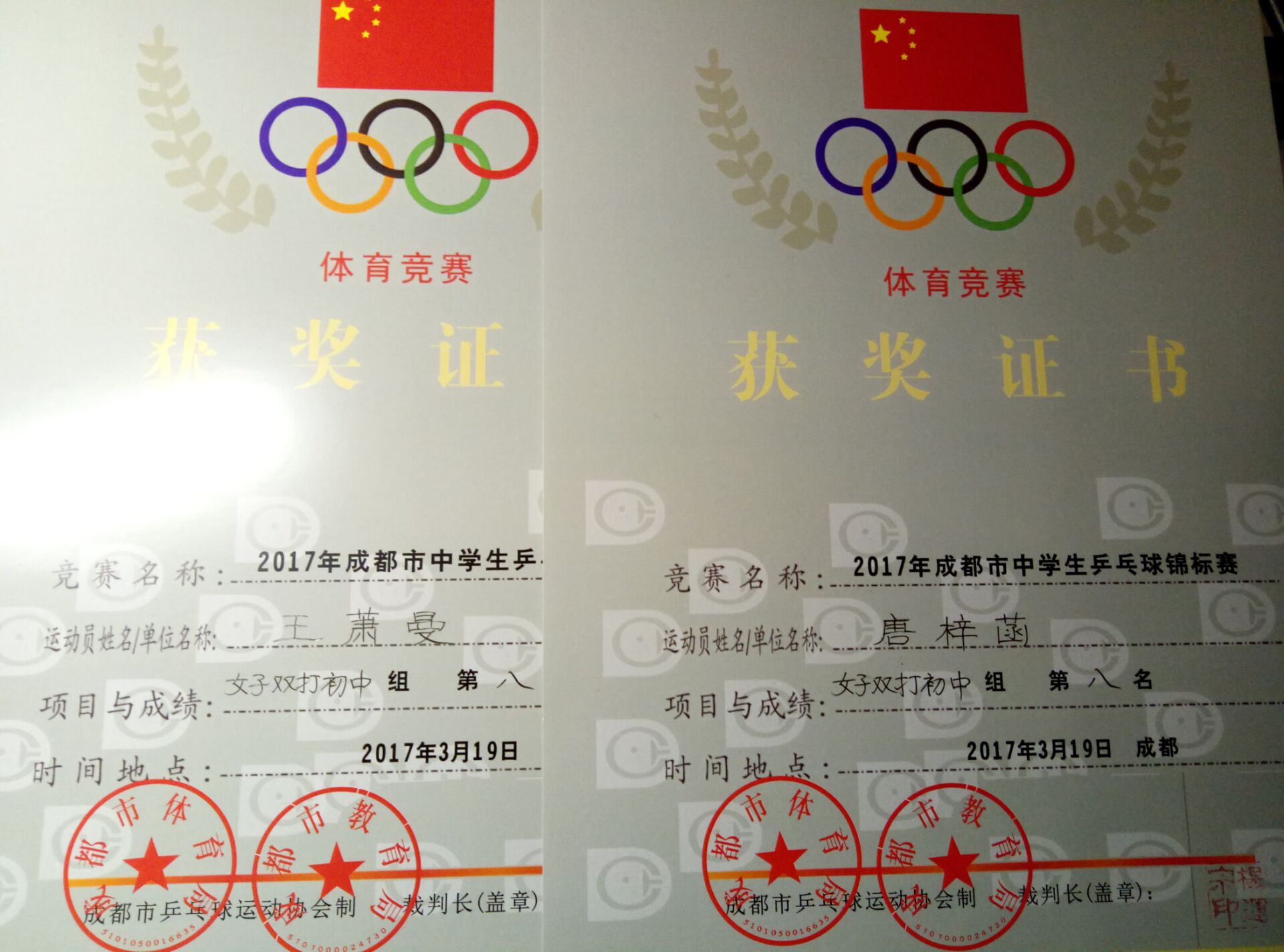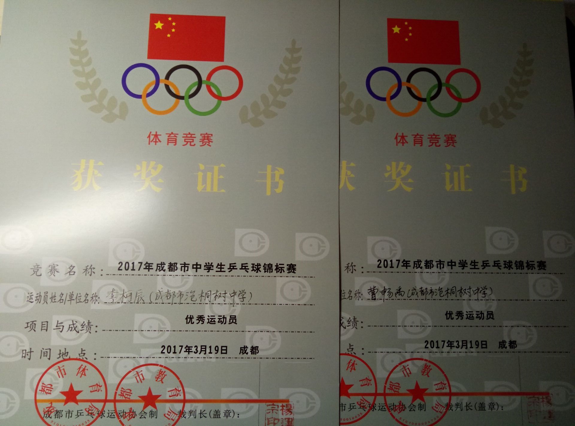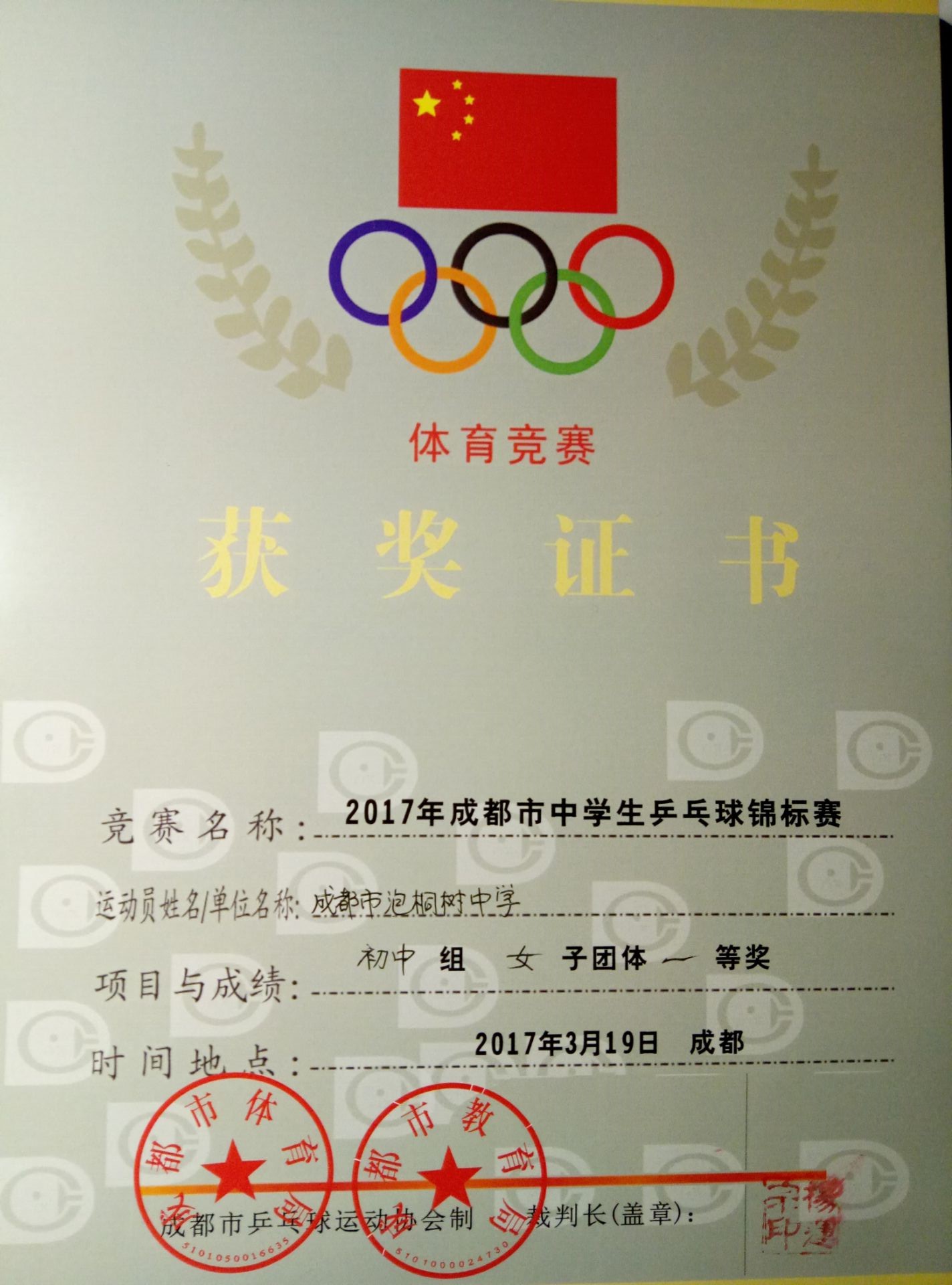 热烈祝贺我校学生在2017年成都市中学生乒乓球锦标赛中取得优异成绩