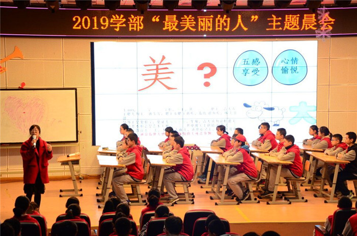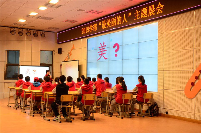 3月27日上午,在学校多功能厅,李红萍老师和2019学部导师16班的同学们为我们 举行了关于“最美丽的人”主题晨会。