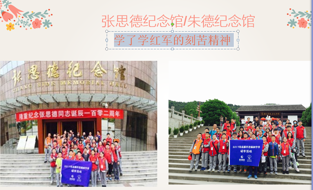 4月18日至4月22日, 泡桐树中学850名学子分十条线路,展开了为期一周的游学研修活动。同学们怀揣学校精心设计制作的《游学宝典》,分散到省外黄山、武汉、苏杭绍、西安;省内乐山、广元、自贡、阆中、卧龙;市内中医大,进行学习和游玩。
