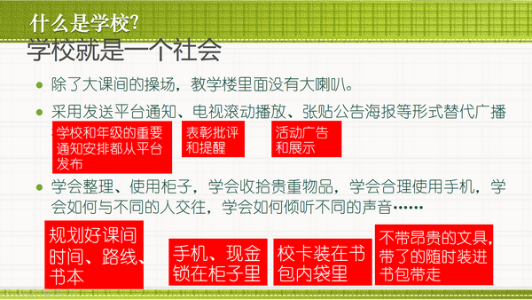 上午,欧校长在多功能厅给同学们上了新学期第一课,面对刚入初中、稚气未脱的孩子们,欧校从自我规划、自我管理、自主学习、团队意识四个方面给出了建议,希望同学们在初中阶段能提升个人修养,成为一名具有“博识、坚毅、创新”精神的新时代少年,正如学校对同学们的期许那样:成参天大树,做社会栋梁。