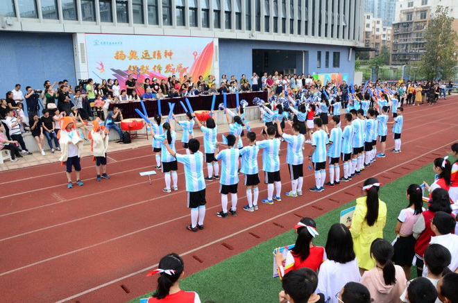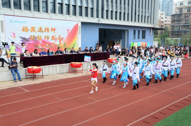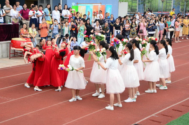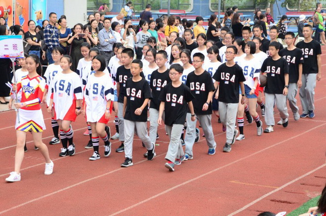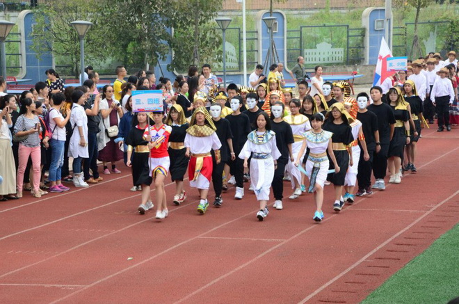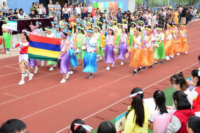 2017年9月30日下午2点,泡桐树中学2018学部、2019学部、2020学部三个年级师生及特邀家长在操场举行了泡桐树中学第四届体育季开幕式和集体项目。本次体育季开幕式以世界各国风采展示为基调,导师们和学生们利用紧张的学习之外的时间,进行多才多艺的歌舞练习。在庄严的国旗方队的带领下,34个国家的导师班方队为大家带来了无与伦比的精彩表演,赢得了家长们、老师们、同学们之间的认可与掌声。