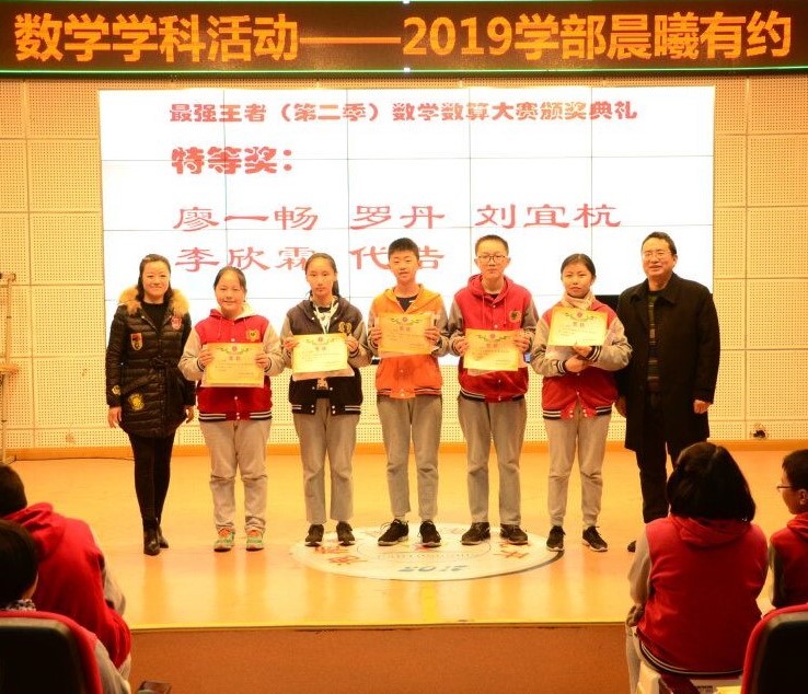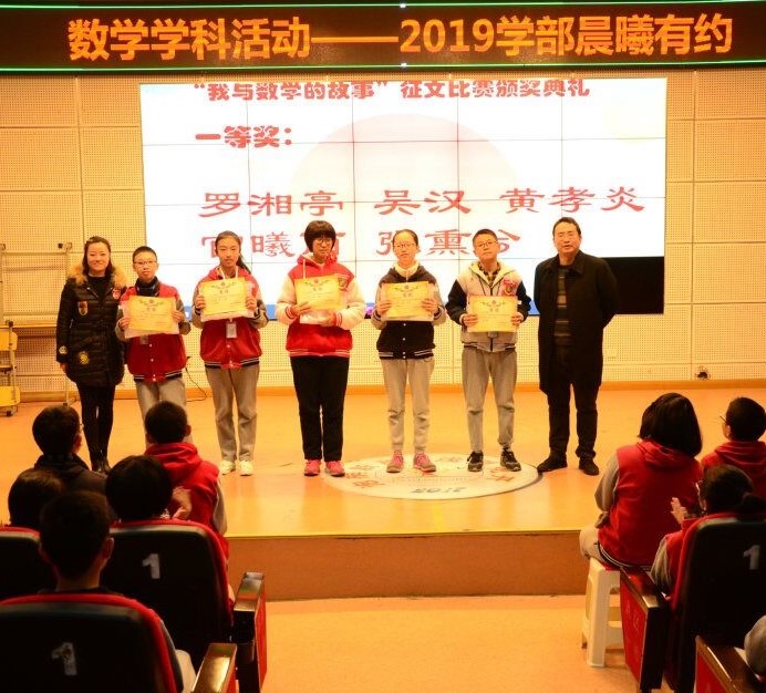 经过评选罗湘亭 吴汉 黄孝炎 官曦雨 张熏兮等同学获得了“我与数学的故事”征文活动一等奖,蒲天林老师,李霞菲主任为获奖同学颁发了奖状及奖品。