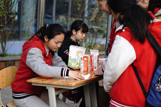 在羽毛球场旁边,设立了灯谜活动区,下课后,同学们纷纷到这里猜灯谜、兑谜底,不一会儿,120道灯谜就被同学们“拿下”了大半!灯谜不同于普通的谜语,是我国传统民俗项目,富含文学性,有其严格的规则,需要较高的知识水平。同学们积极参与、勤动脑筋,娱乐的同时活跃了大脑,更深度体验了一把传统文化的魅力。