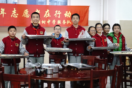 值得一提的是,泡桐树中学志愿服务队参与到了包饺子活动的服务工作中,组织了老师和家长志愿者作为包饺子指导员,现场为参加活动的同学们提供技术支持和后勤保障。