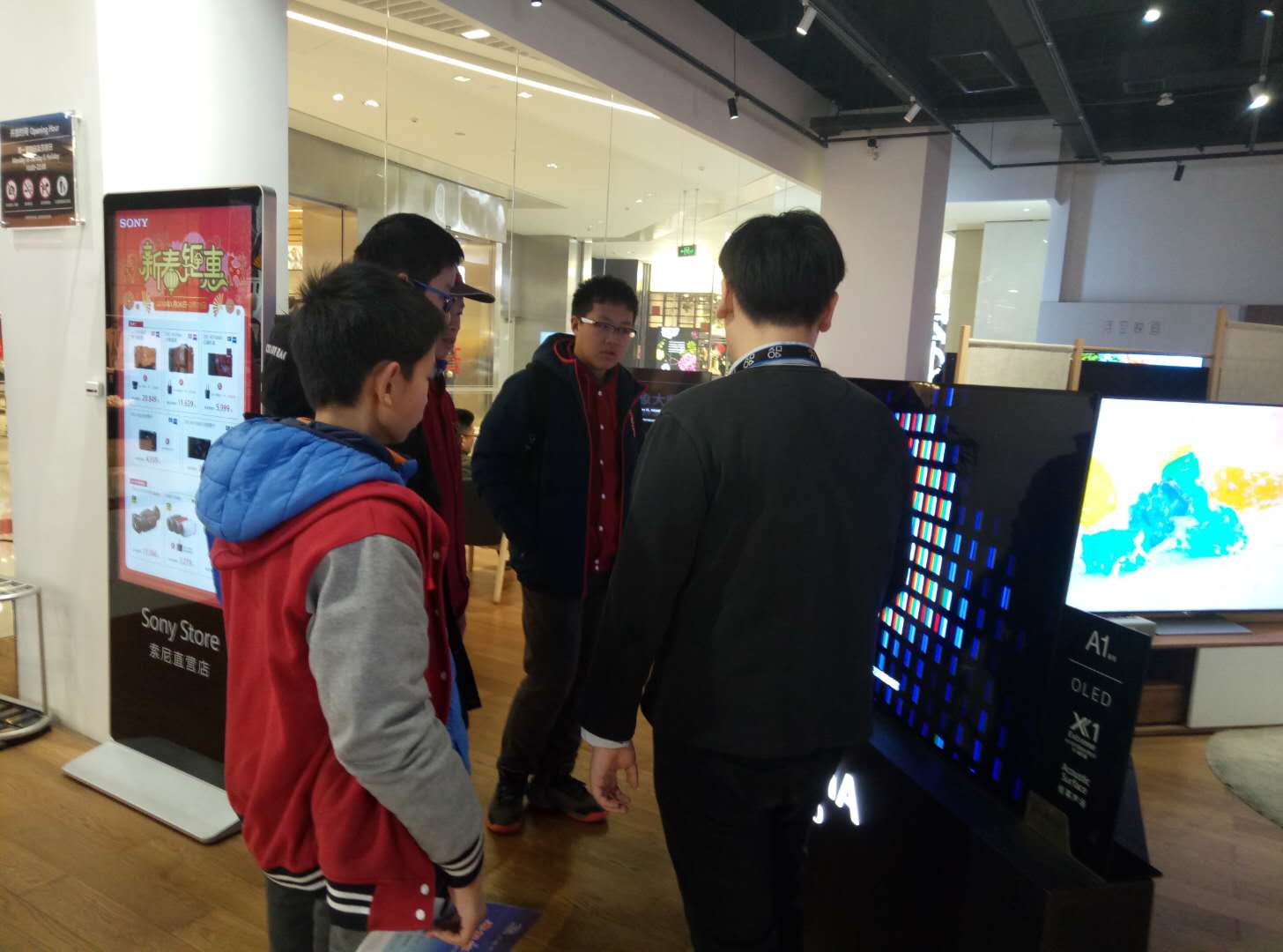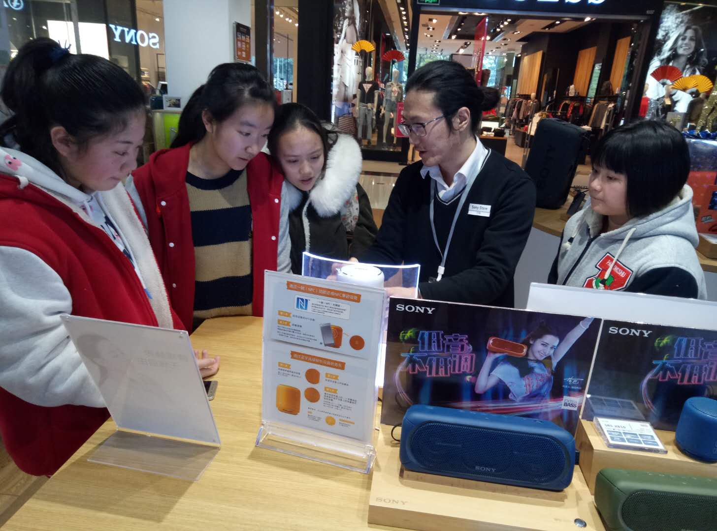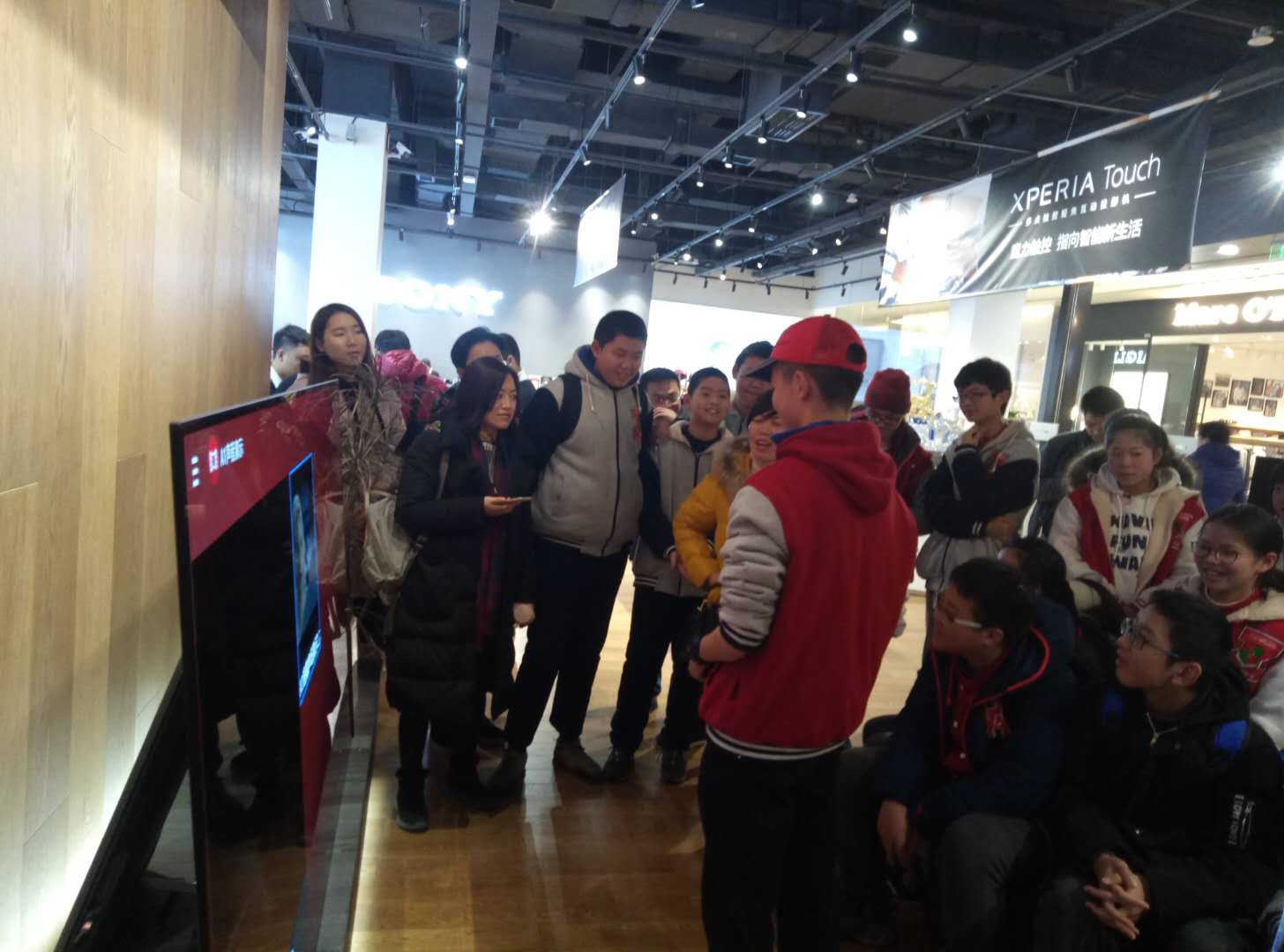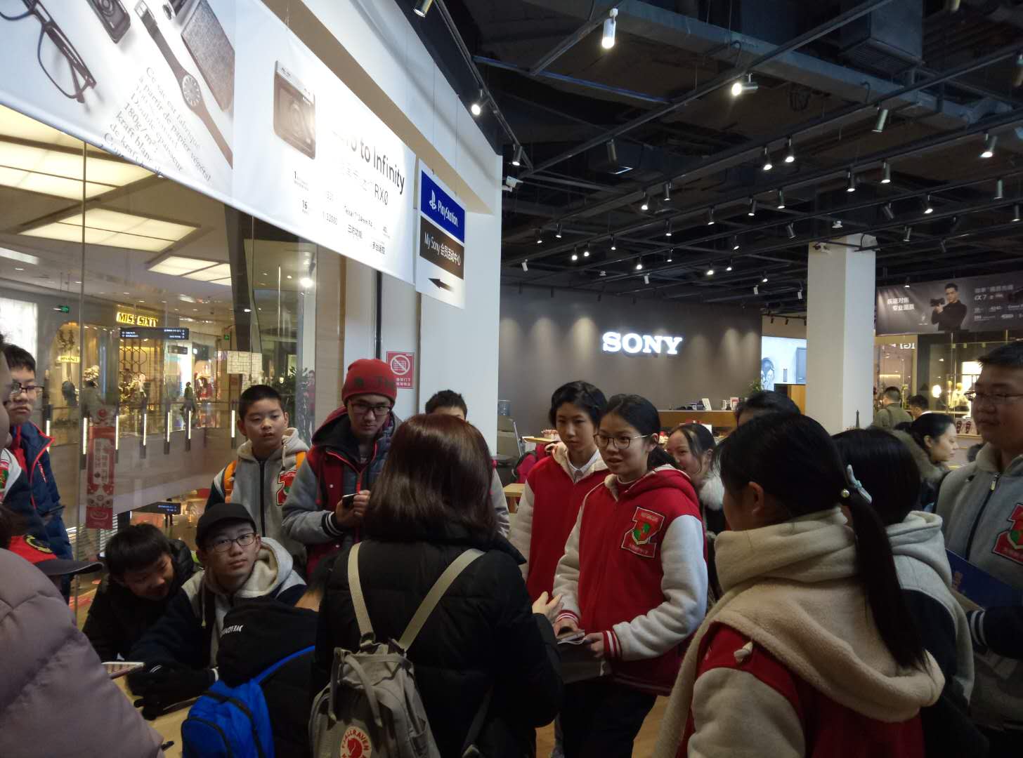 2018年2月4日,外面飘着绵绵细雨,参加假期职业考察的泡中学子们在四位带队老师的带领下,来到位于来福士广场L1的SONY直营店,进行为期半天的职业考察活动。