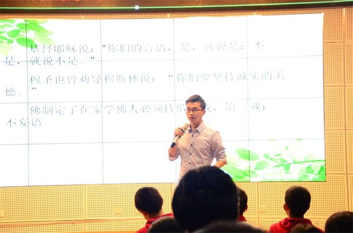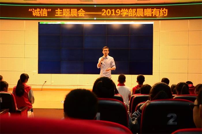 4月23日,泡桐树中学2019学部在阶梯教室举行了诚信主题晨会。本次晨会由导师6班承办,6班导师向荏杰老师主讲。