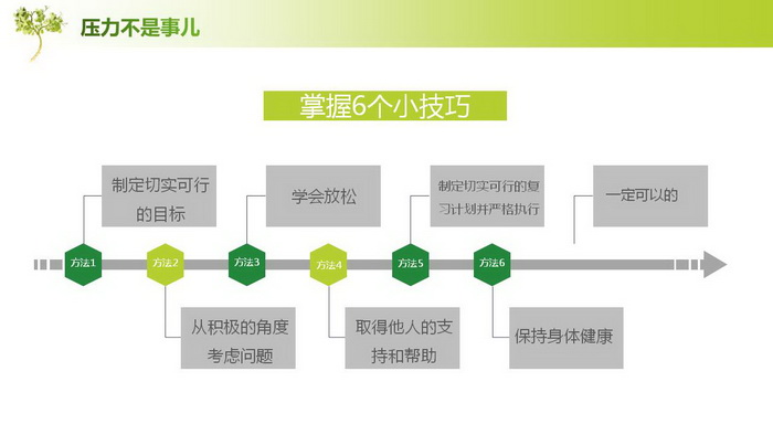 王老师说“考试无处不在,压力无处不在”的现实情况,学生应该客观面对考试,有适度的压力反而会激发学生学习的动力,一般来说,凡是在考试前有些紧张的学生都是上进的学生,紧张以及紧张带来的苦恼都是寻求上进之人的专利。相反压力过小说明学生不上进、对考试不感兴趣;压力过大容易造成失眠、暴躁、腹痛等不良反应。所以我们要掌握六个技巧,轻松应考。