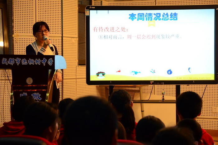 出勤形象通讯组的杨亦涵老师对上周2020学部学生的发型、着装、迟到等现象进行了说明。