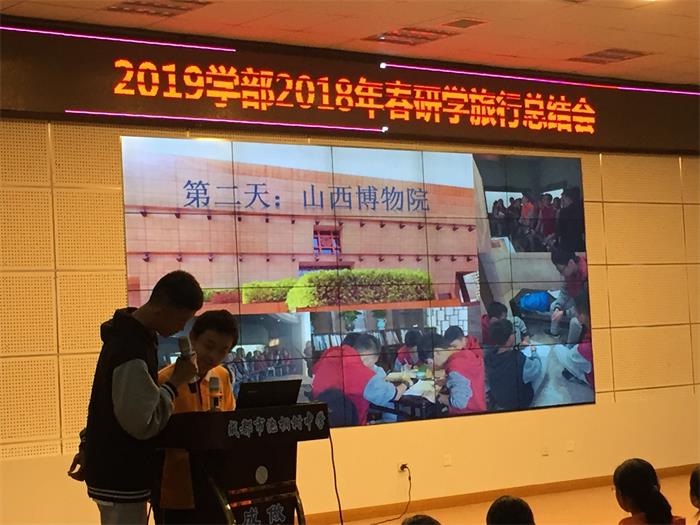 然后上场的是分享山西线游学收获的姜彦卓和李易章同学。这条路线的同学们到达太原后首先参观了山西省博物馆,了解到地方特色;还到了平遥古城,了解了“票号”的意思;品味了饱含底蕴的剪纸,也看了王家大院,明白其豪而不土,注重培养后代文化底蕴的特点;还去看了牧童遥指的杏花村,拜访了晋祠。
