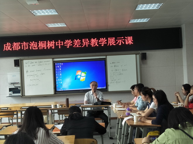 接着,华教授观摩了胡宇老师的差异教学课堂,并对胡老师的汇报进行了细致指导。青羊区的英语教研员王老师也带领整个青羊区的初中英语老师一同前来观摩、指导。华教授、徐局长、王老师对胡宇老师的课堂作出了高度的评价,同时也提出了差异教学课堂中存在的可以改进的地方,让在座的各位老师都受益匪浅。