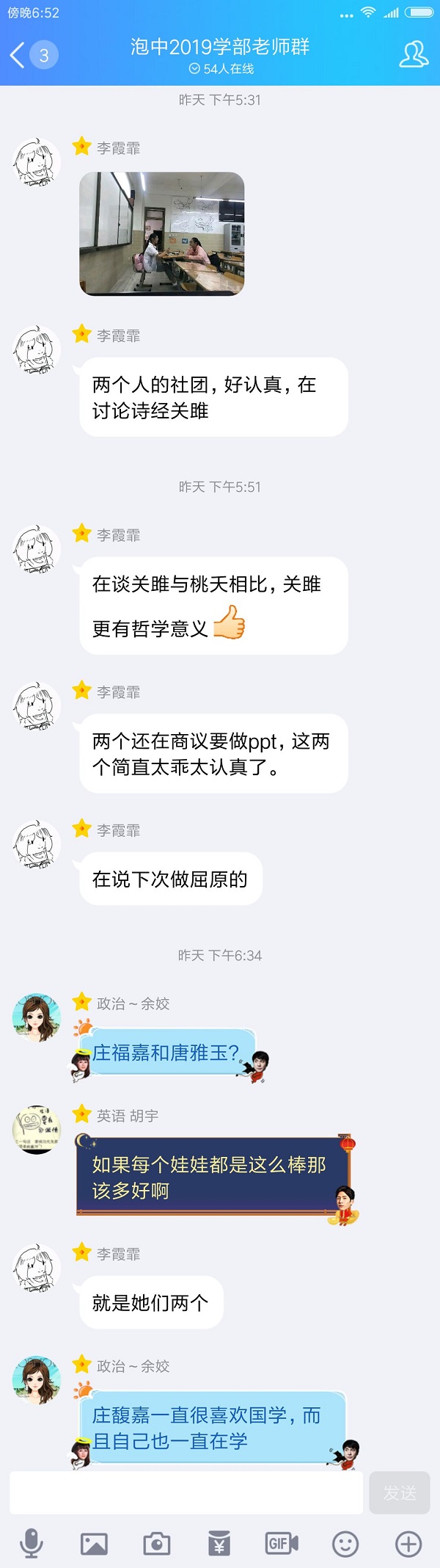 原来,她们在利用每周一的社团活动在讨论《诗经》。瞧她们的认真劲,连我们老师都赶紧点赞!