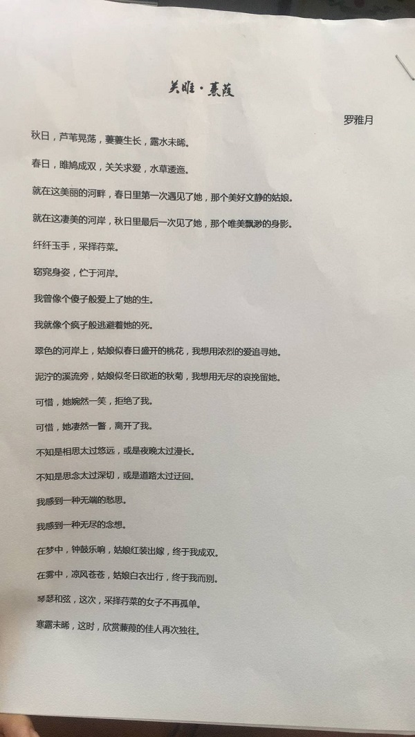 除了她们俩,学校喜欢《诗经》的还有不少同学。让我们一起来分享一下罗雅月同学的这篇文章吧!