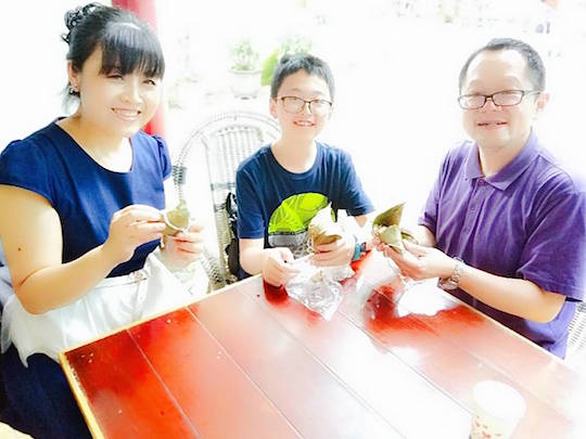 粽子是端午节必不可少的节日美食,18日下午,学校特别开设烹饪课,教授同学们包粽子的技巧。每个参课的同学将自己包好的粽子带回家里,煮熟后与家人共同分享。