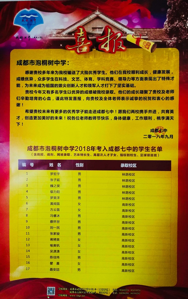 如果你选择的学校是成都市泡桐树中学