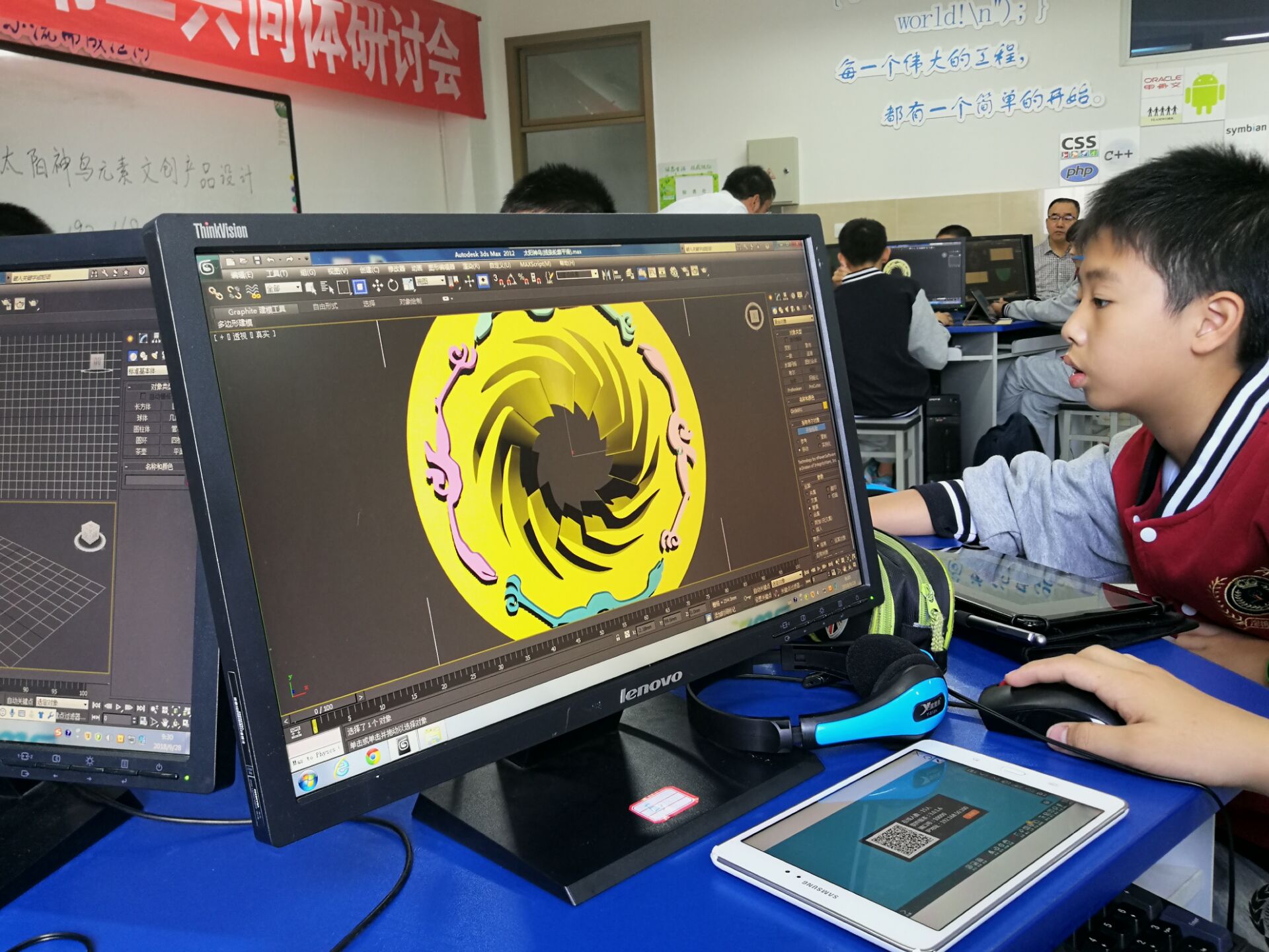 研讨会首先从我校王冬老师带来的一节主题为“天府文创——太阳神鸟元素文创产品设计”展示课开始。王冬老师在“未来课堂”理念的指导下,尝试展开学科融合的项目式学习。将历史、艺术、技术学科进行整合,利用3D模型设计,激发学生的创新意识,尊重学生的个性,进行太阳神鸟元素文创产品的设计。为我们带来了一堂耳目一新的技术课。