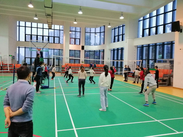 为备战本周周末在我校举行的“青羊区教育系统2018年气排球比赛”,特邀请西南财经大学附属小学(原光华小学)教职工队伍于11月21日下午5点在学校二楼综合馆进行了一场友谊赛。