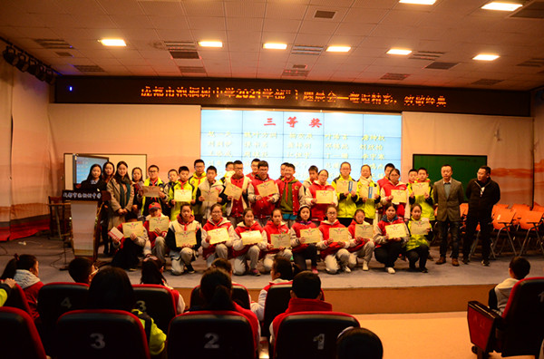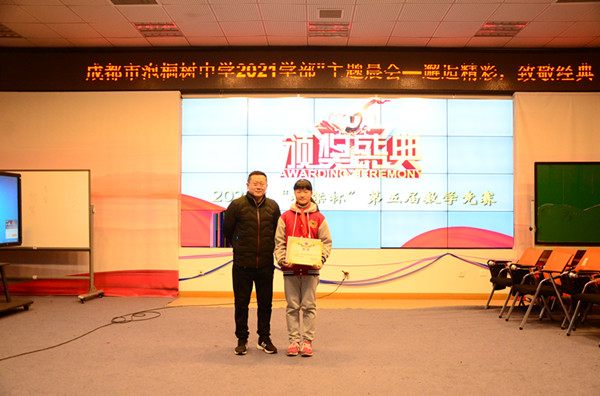 随后进行的是泡桐树中学第五届“栋梁杯”数学联赛颁奖仪式。戴思宇以满分荣获本次竞赛特等奖,何礽杰等10名同学获一等奖;周羽展等20名同学获二等奖;赵一天等31名同学获三等奖。全体数学老师为以上同学颁奖。