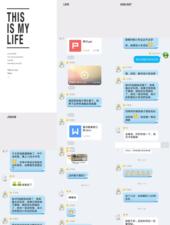 周日零点过了,王老师还在群里发信息,周日下午五点过还在准备教具。至此,《黄河》前世结束。