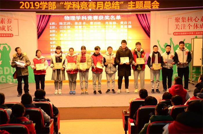 时光华丽丽地来到2019,这一年,是2019学部的奋进年、收获年!1月7日,2019学部为期一月的学科竞赛月活动落下帷幕,学部利用晨会时间在多功能厅召开表彰总结大会。