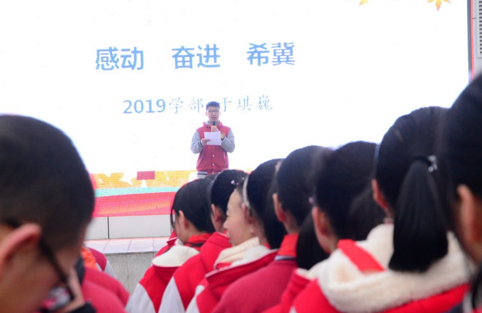 优秀的初三学长于祺巍跟大家分享了自己开学的新愿景,落落大方的演讲,发自内心的祝福,让台下的同学感受到了来自同龄人,来自同学的正能量。这是榜样的力量