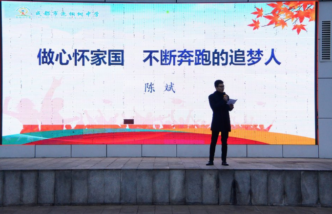 优秀教师代表陈斌激昂的发言展示了一个泡中教师的热情和责任,我们心怀梦想,但我们不忘初心,脚踏实地,做不断奔跑的追梦人.