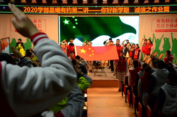随着熟悉激昂的国歌响起,2020学部第三周的晨曦有约开始了。