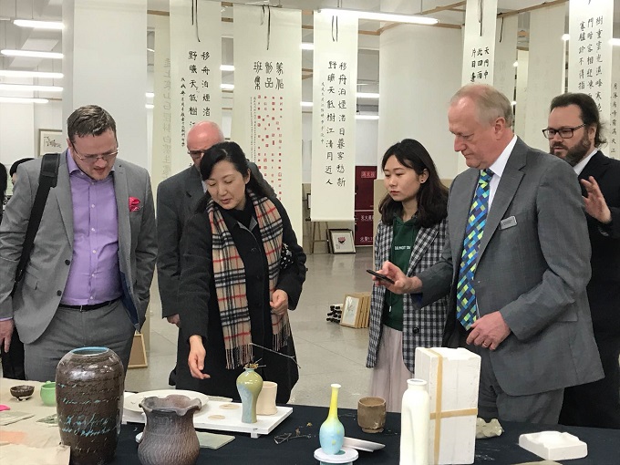 首先,访问团在欧燕副校长和赵东书记的带领下参观学校的艺术大厅和其他功能室。