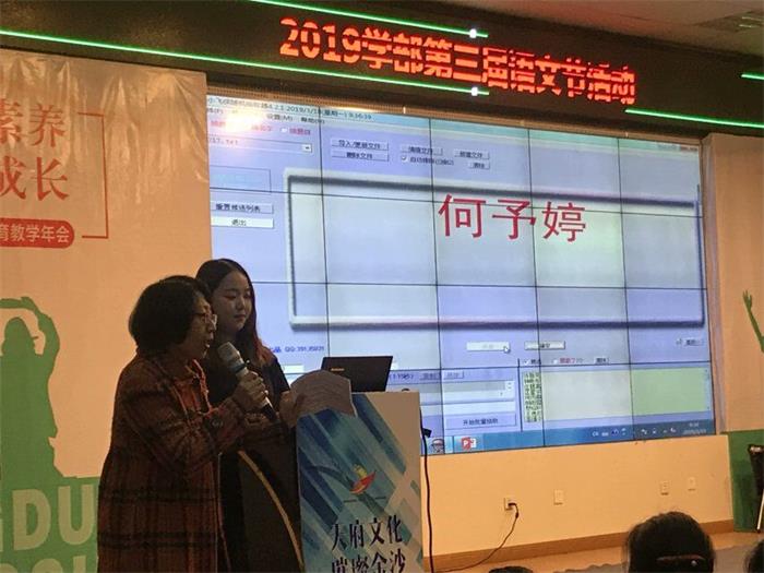 本次语文节活动以“经典诗歌背诵大赛”为主,大屏幕将滚动全年级同学的名字,随机点名!当某位的名字幸运地出现在大屏幕上,语文江老师或刘老师会将抽签桶和话筒递到同学身边。