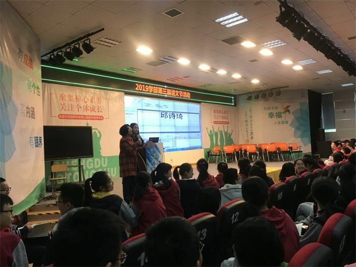 一时场面热烈,被抽中的同学均能准确背诵出抽中的诗歌!而其他同学也会小声跟诵,表现出对诗歌的熟练记背和极大热情!尤其是屏幕滚动中,人人激动期盼,多功能厅中欢声笑语不断!