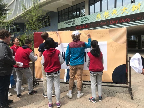 好的时光总是短暂。半天的交流活动转眼就已结束。所有中美学生合影留念和双方互送礼物,为此次来访交流画上圆满的句号。希望中美两校的师生能够继续维持这一段珍贵的友谊,加深双方对彼此的了解。
