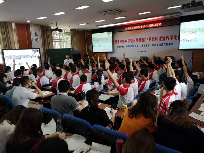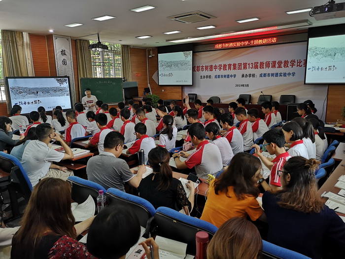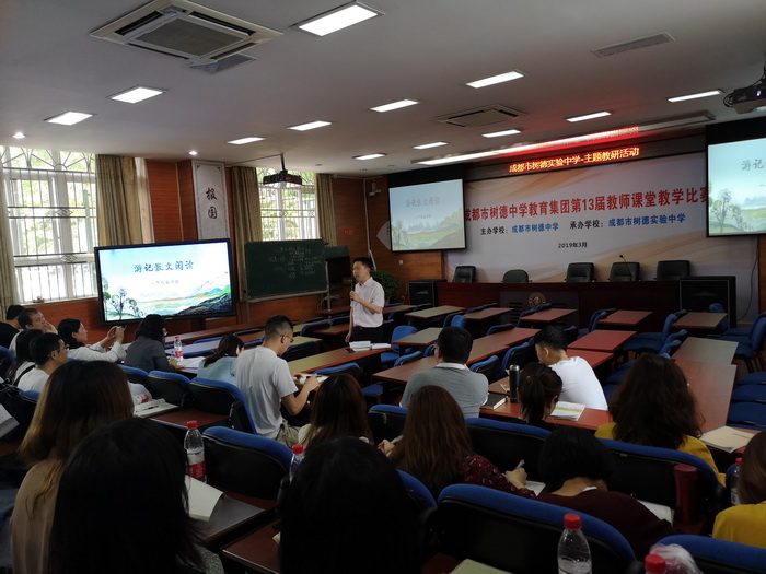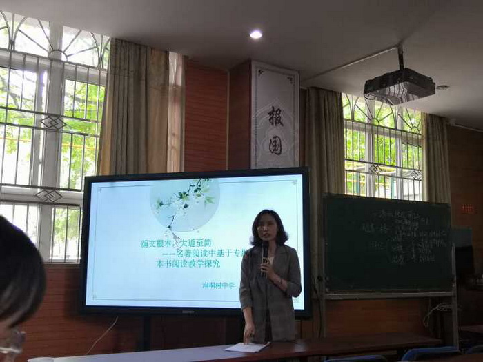 第二节课是教学研讨,首先是树德实验中学的彭睿老师以崔老师这节课为例,进行了《游记散文教学探究》的讲座,讲诉了游记散文的三要素、到单元教学的课时安排、每篇课文教学重点的异同等等,这都体现了树德实验中学教研组的集体智慧与创新教学,泡桐树老师们感受到校本教研深入的重要性。之后是泡桐树中学的谢晓霞老师进行了《循文根本自主合作探究学习名著》展示,基于学生名著阅读的现状和教学中的难点,谢老师从回归文字本体、回归学生本体、回归思考本体三方面着手,实施真实有效的名著阅读,通过学生学习效果的展示,让“循文根本”的教学理念深入人心。